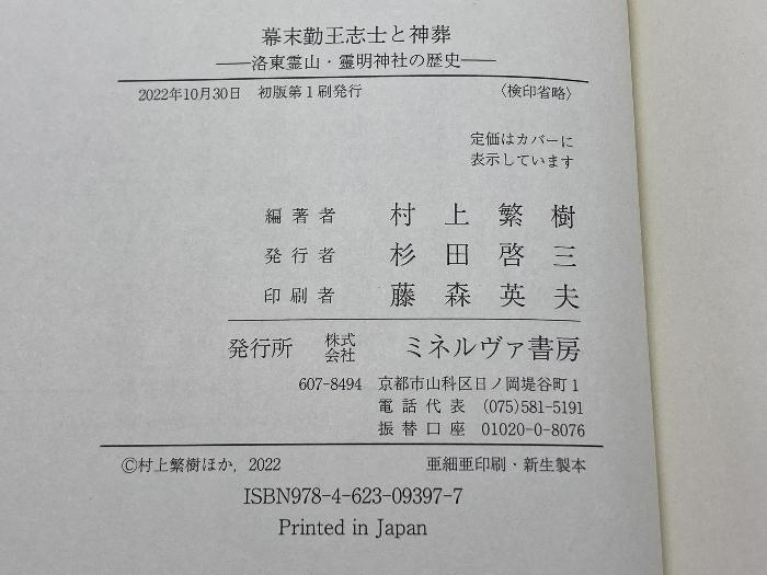 商品名:幕末勤王志士と神葬:洛東霊山・靈明神社の歴史 ミネルヴァ書房 村上繁樹