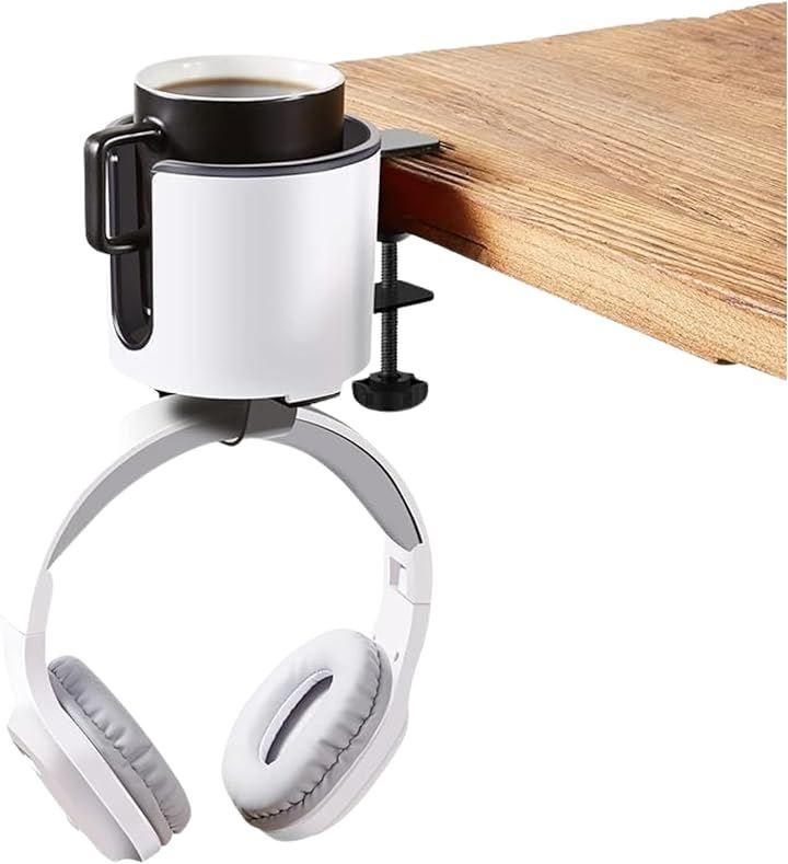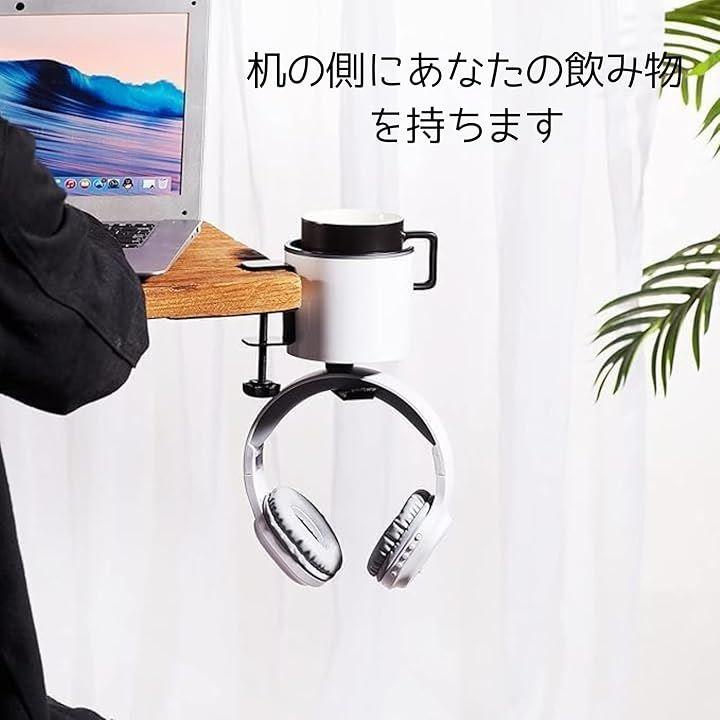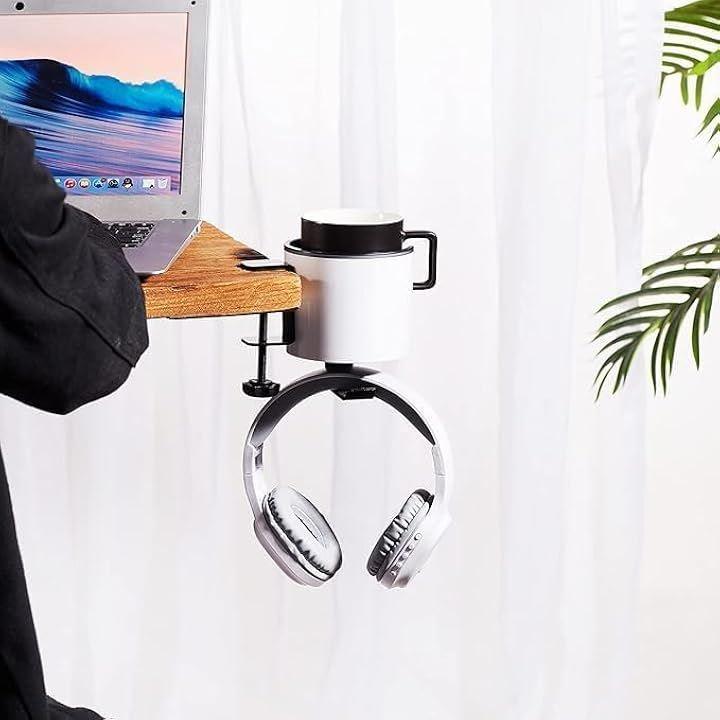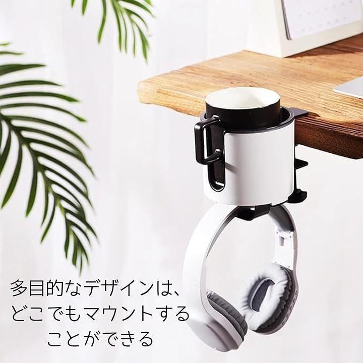 カップやヘッドホンをすっきりと収納し、デスク周りのクラッタを減らします。