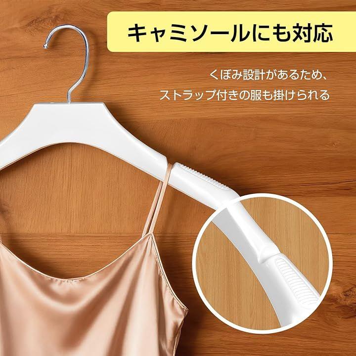 ハンガーの両側にくぼみを設けており、キャミソールやワンピース等の肩ひもがついた衣類にも対応します。