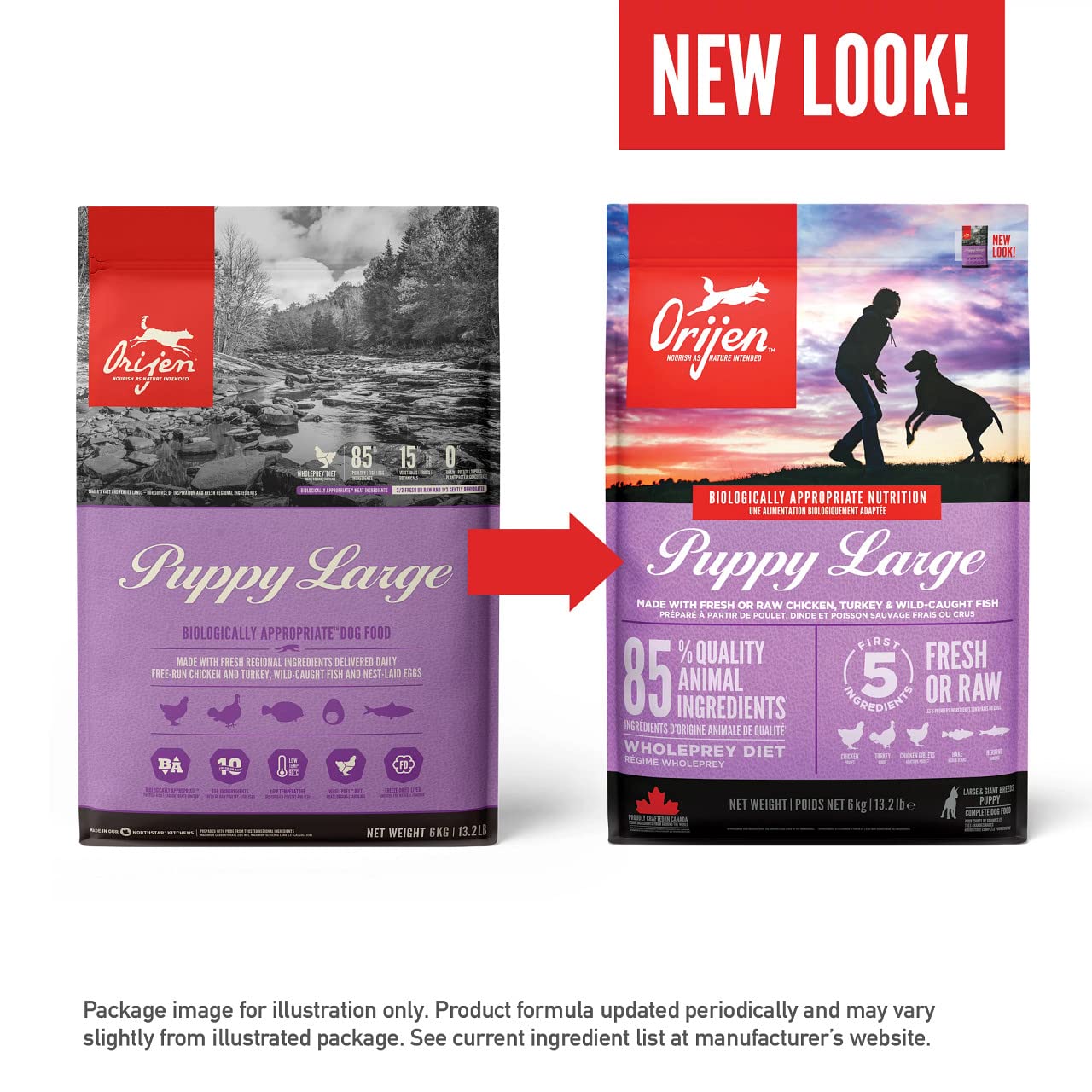 粗たんぱく質38%、脂肪分16%、粗灰分7%、粗繊維6%、水分12%、カルシウム1.3%、リン1.1%、オメガ6脂肪酸3%、オメガ3脂肪酸1.1%、DHA/EPA0.3%/0.2%、グルコサミン1400㎎/kg、コンドロイチン1200㎎/kg、エネルギー(ME)は3720kcal/kgまたは250mlカップ1杯(130g)につき、446kcalです。
