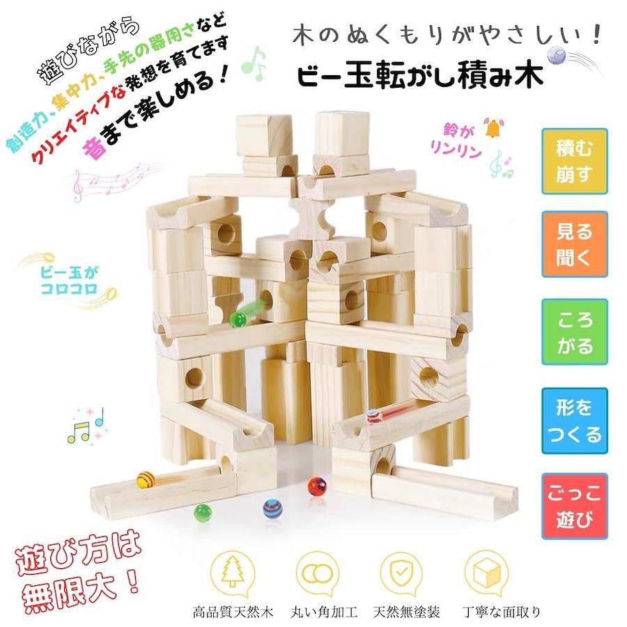 【2Dから3Dへ、立体遊び知育玩具、ビー玉転がしおもちゃで知育】 「考える」「組み立てる」「試す」「直す」の4つのステップで、子どもたちは粘り強く取り組む力と集中力を身につけます。それは同時に達成する喜びとなり、お子さまの自信へとつながります♪ ビー玉がクルクル回って流れ落ちる様子から、もう目が離せません!つみかえてコロがして、木の優い音色が心地よく、音まで楽しめる♪ 【考えるチカラ、遊んで身につく】 「Mag-Buildingビー玉転がし積み木」は、ただの遊び道具ではありません。お子様の感覚教育、言語、算数能力、そして知能の発達をサポートする知育玩具として設計されています。遊びながら、お子様は手触りや素材の重さを感じ取ります。これにより、手の感覚や視覚、忍耐力の向上だけでなく、数学的・幾何学的な感覚、理論的思考、立体感や空間認識も磨かれます。 【子供が喜ぶプレゼント】 男の子、女の子どちらにも人気のある定番のオモチャです。子供の成長や発達を促す知育玩具としても人気で注目を集めています。無塗装・頑丈で飽きが来ない長く使えるおもちゃだから、出産祝い、子どもの日、七五三、クリスマス、1才 2才 3才のお誕生日プレゼント、新年祝い、合格・入園・入学祝いなどのプレゼントにピッタリ。ご家庭用だけでなく、景品・子供会・自治会・PTA・プレイスペース・児童館・保育園・卒業記念品・モンテッソーリ教育・幼稚園の教材・教具としても大変オススメです。 【日本玩具安全基準STマーク取得・食品衛生法規格試験合格】 一つ一つ丁寧に磨かれた積み木は、お子さんの手に優しくフィットします。積み木の角は適度に丸く、滑らかに仕上げられているので、とても積みやすくなっています。さらに木の素材感が感じられるよう、無塗装・無着色で仕上げられているので、赤ちゃんが口にしても安心してお使い頂けます。 【安心の保証】お客様にご安心してご購入いただく為、商品ご到着後3ヶ月間の交換保証をお付けしております。万が一商品に初期不良、または通常使用による破損、不具合などがあった場合は、必ず迅速に対応致します。お気軽にご購入履歴のお問い合わせよりか弊社にメールしていただければと思います。