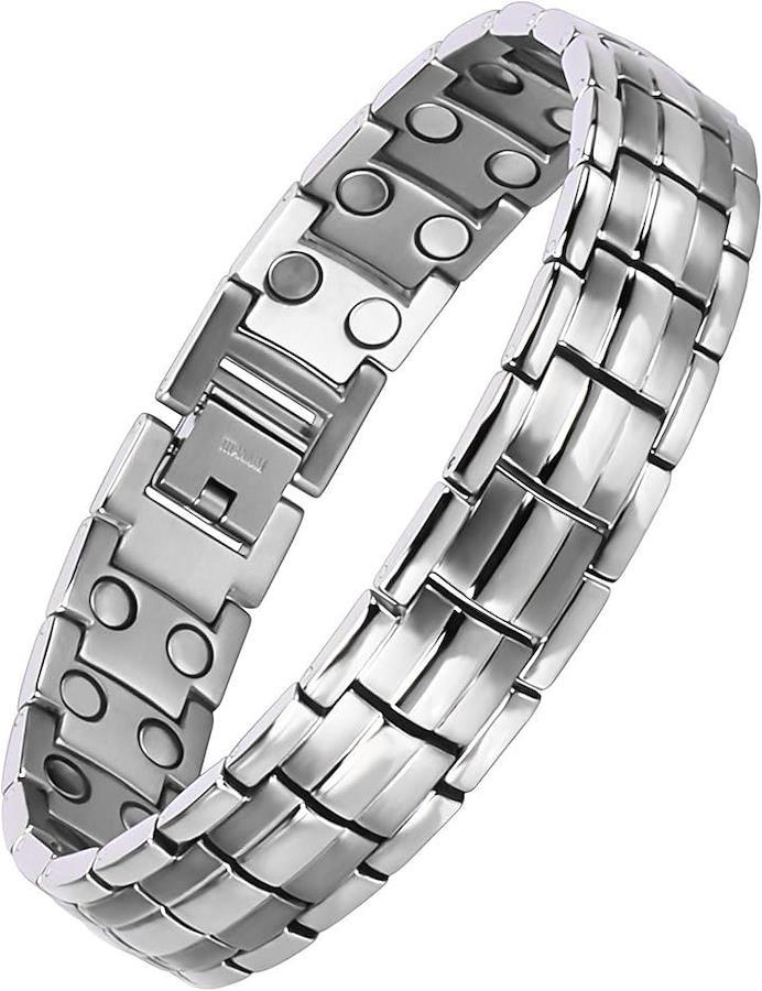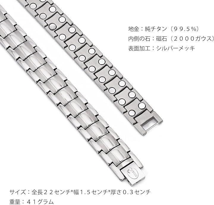 「素材」メタル:純チタン(99.5%)、元素:磁石(2000ガウス)、コーティング:シルバーメッキ
