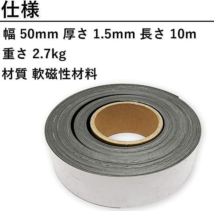 ・「サイズ」幅 5cm 長さ 10m 厚さ 1.5mm 「重さ」2.7kg 「材質」軟磁性材料 「色」黒