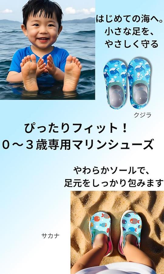 初めての海やプールデビューにぴったり。 軽くて柔らかく、サッと履かせやすく、お手入れも簡単。