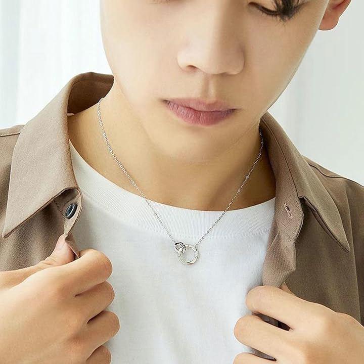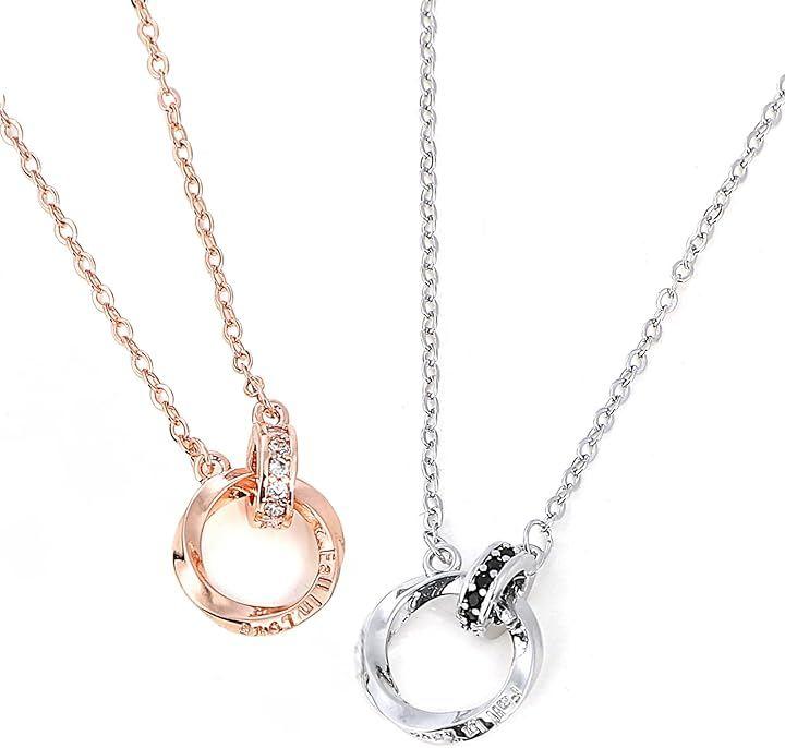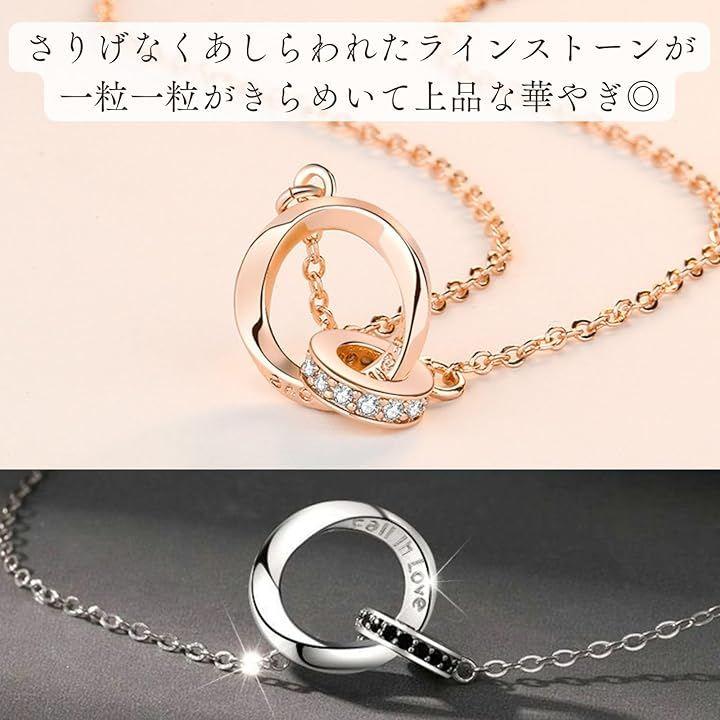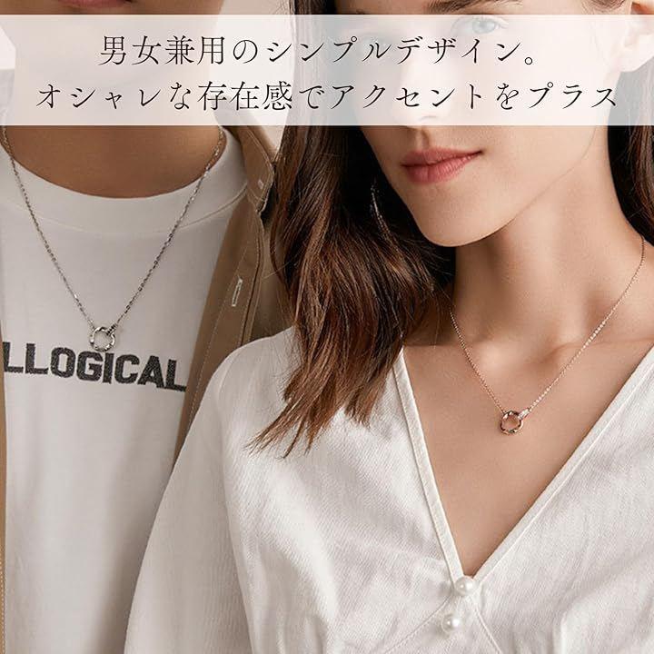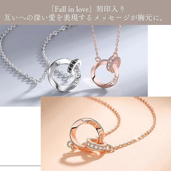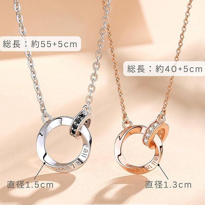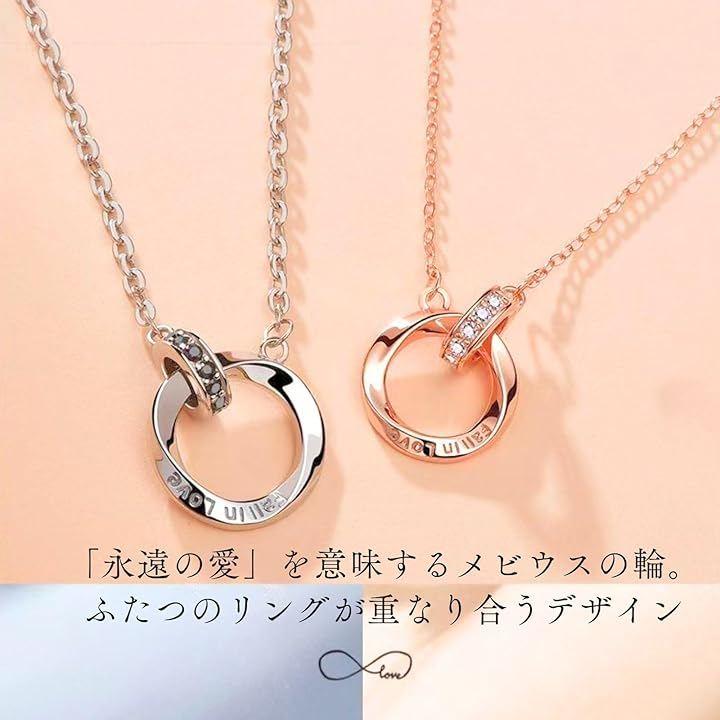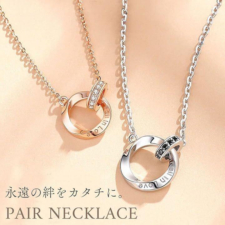 ふたつのリングが重なり合うデザインの「永遠の愛」を意味するペアネックレス。