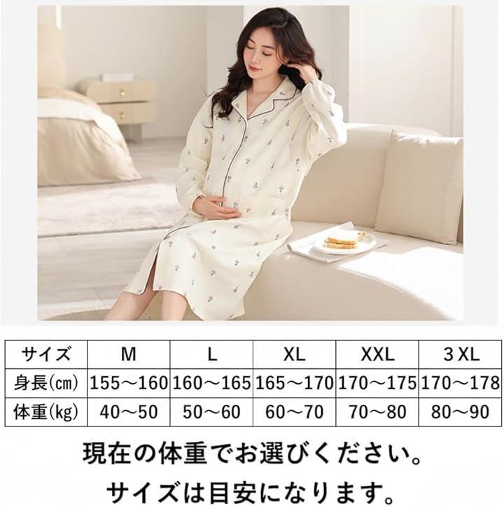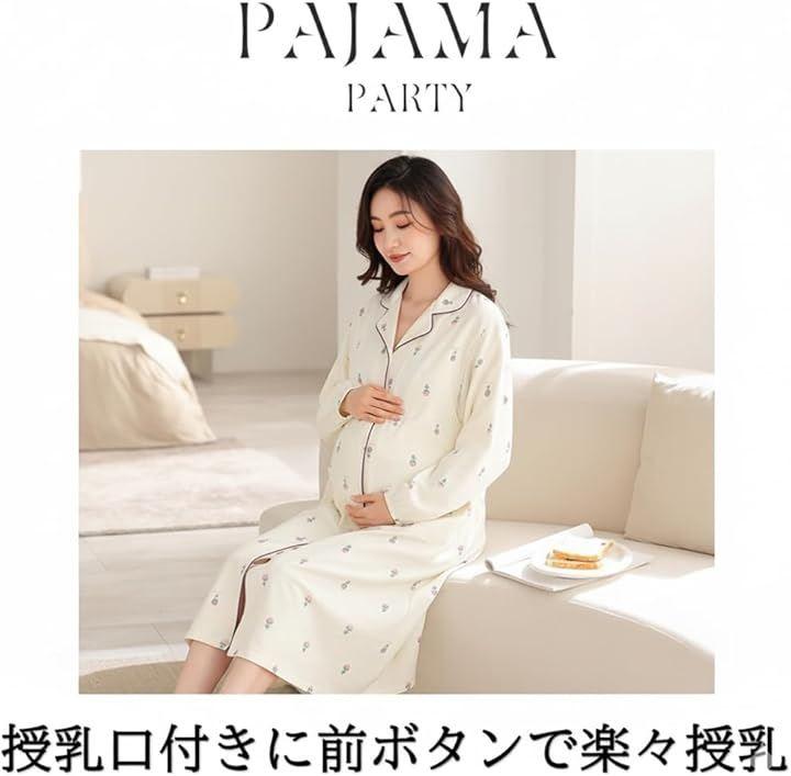 産前から産後までご使用いただけるこのパジャマは、前ボタンが付いているため、赤ちゃんの授乳もスムーズで安心です。