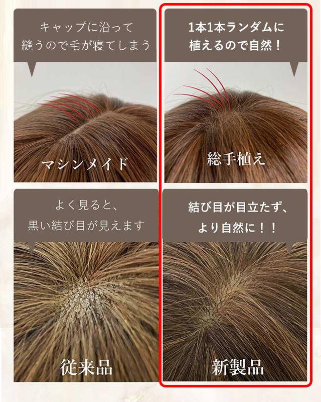 1本1本手植えで作られ自然で通気性と軽さに優れた上質なウィッグです。
