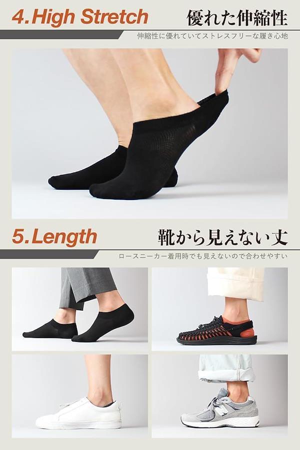 「靴から見えにくい+脱げにくい」くるぶしより下の丈で、ローカットのスニーカーを着用した時でも、靴下があまり見えません。