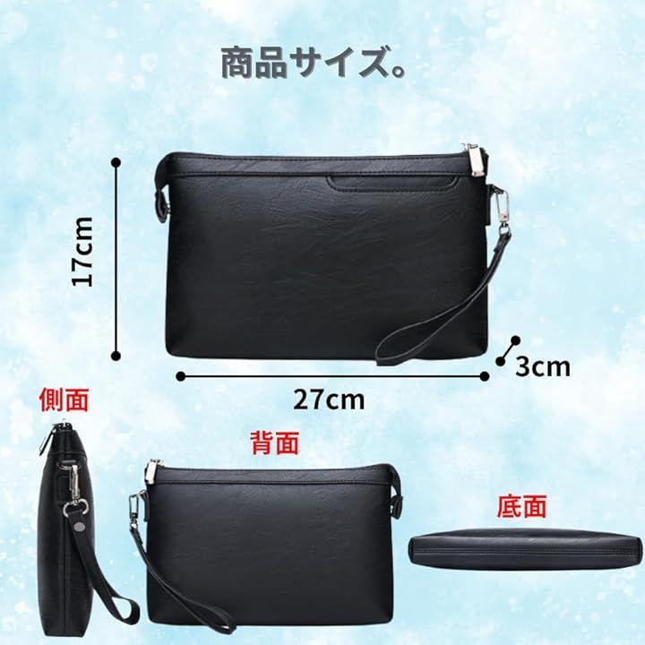 「材質」PUレザー 「サイズ」幅27.0cm 高さ17.0cm マチ3.0cm 「重量」約180g *多少の誤差がある場合がございますので、ご了承ください。