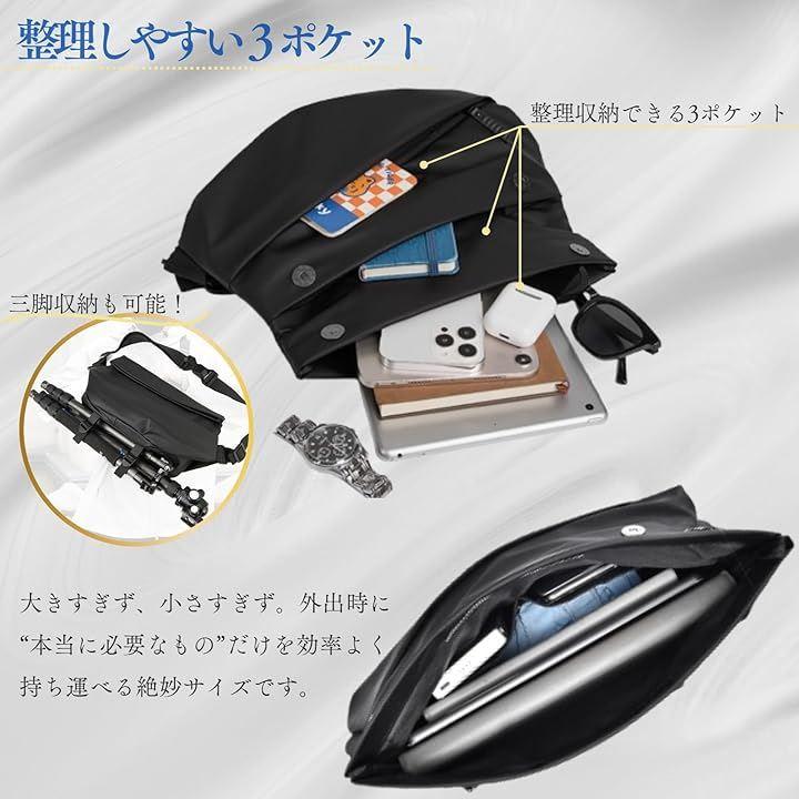 「体にフィットする立体デザインと収納構造」立体的なカットと縫製により、身体にぴったりとフィット。歩いたり自転車に乗る際もバッグが安定し、邪魔になりにくいのが特徴です。