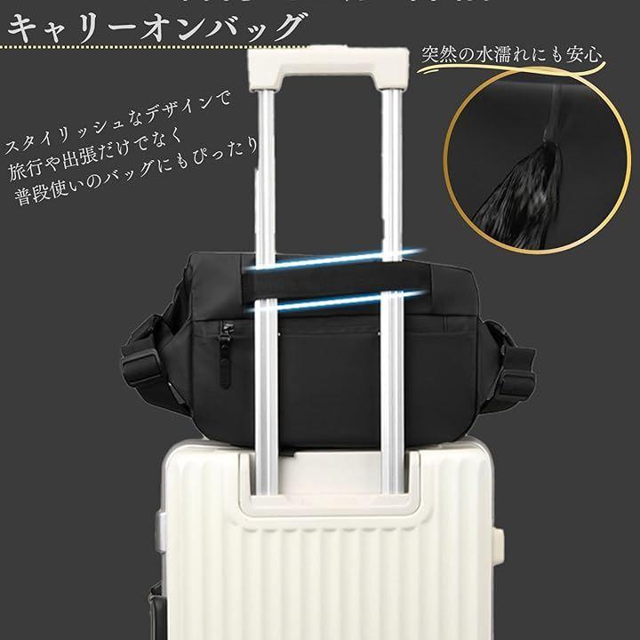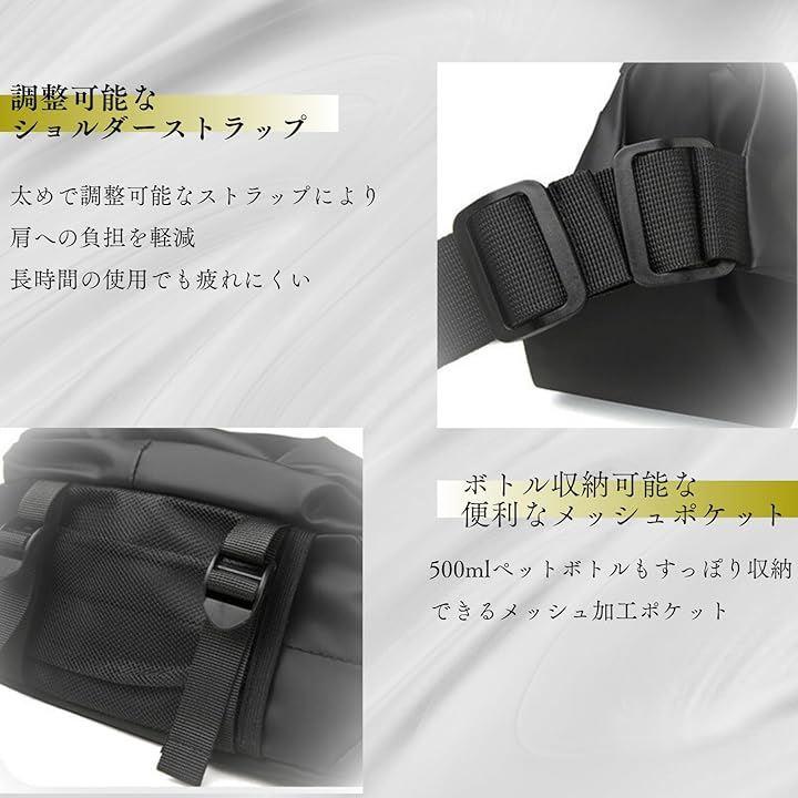 「長さ調整可能な太めショルダーストラップ」幅広で頑丈なショルダーストラップにすることで、斜めがけでも肩に負担がかかりにくい設計になっています。