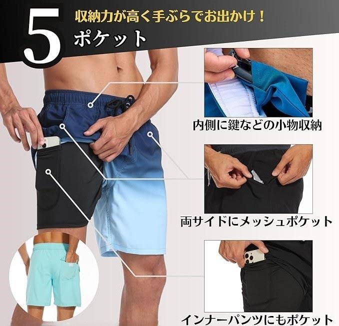 「5個ポケット付き」水着部分には両側と後ろにポケットがあり、内側には鍵などが入る小物収納があります。