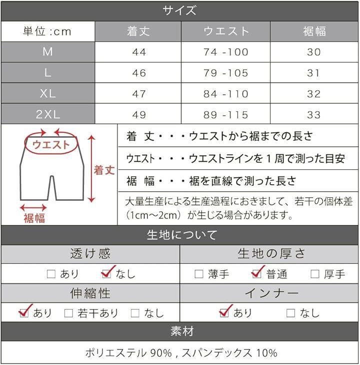 サイズ詳細(*平置き採寸) 「M」着丈:約44cm ウエスト:約74-100cm 裾幅: 約30cm 「L」着丈:約46cm ウエスト:約79-105cm 裾幅: 約31cm 「XL」着丈:約47cm ウエスト:約84-110cm 裾幅: 約32cm 「2XL」着丈:約49cm ウエスト:約89-115cm 裾幅: 約33cm