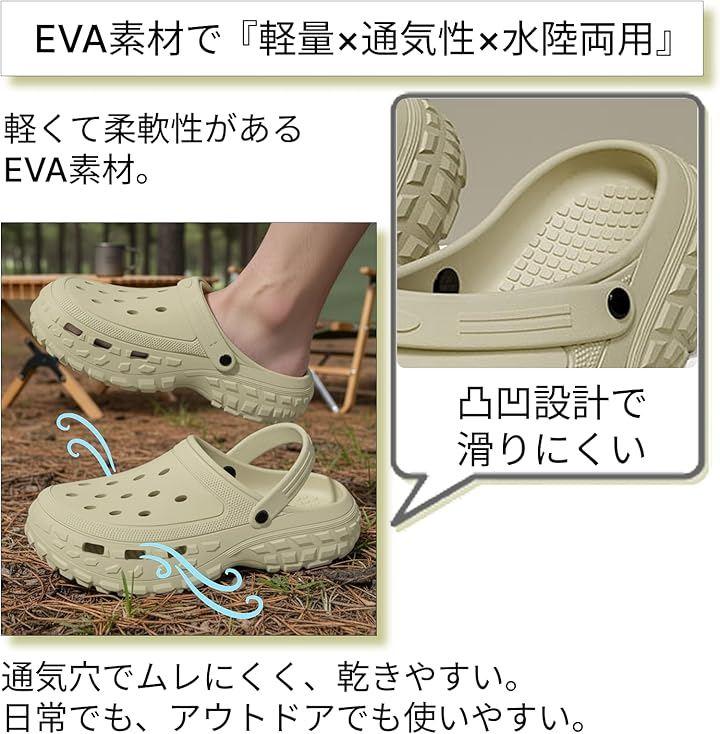 「柔らかEVA素材で快適」 弾力性に優れた高品質EVA素材を使用し、長時間履いてもへたりにくく快適な履き心地。