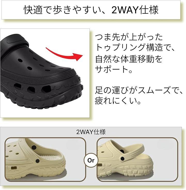 「軽量2WAYデザイン&豊富なサイズ」 かかとストラップを倒せばスリッポン風、掛ければフィット感アップ。