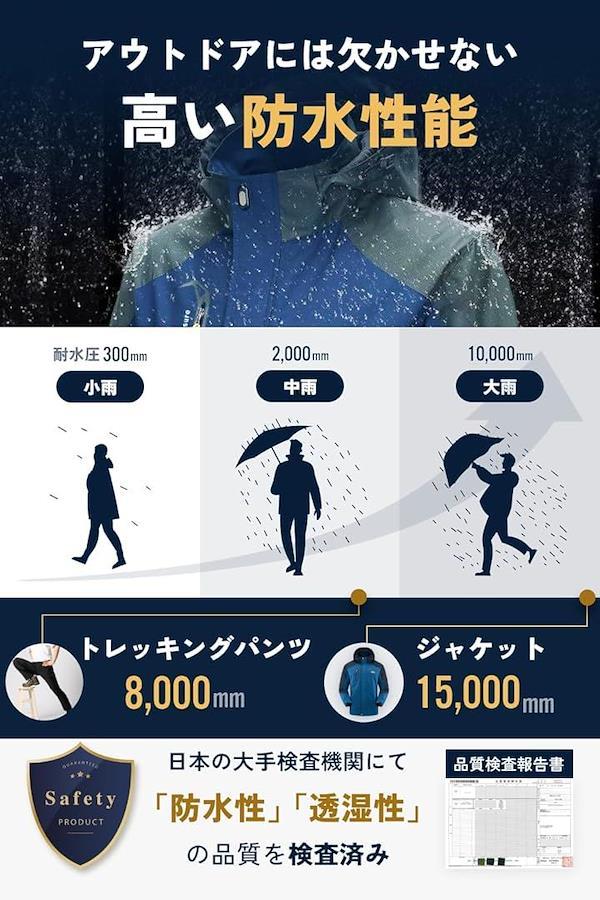 「重量」ジャケット約520g、パンツ約430g「メイン素材」 ポリエステル「利用シーン」登山、釣り、バイク、アウトドア、キャンプ、サイクリング、スポーツ、防災など 「機能」*ジャケット:防水・撥水加工(耐水圧15,000mm)、防風、防寒 *速乾トレッキングパンツ:防水・撥水加工(耐水圧8,000mm)、防風、速乾、伸縮 「カラー」ネイビー、ブラック、ブラウン、グリーン、レッド 「サイズ」 M~3XL <ジャケット> 着丈 /肩幅/胸囲 /袖丈 [M] : 72 / 48.5 / 116 / 62 [L] : 74 / 50 / 120 / 64 [XL] :76 / 51.5 / 124 / 66 [2XL] :78 / 53 / 128 / 68 [3XL] :80 / 54.5 / 132 / 70 <パンツ> ウエスト /着丈 [M] : 80 / 99 [L] : 84 / 102 [XL] :88 / 105 [2XL] :92 / 107 [3XL] :96 / 109