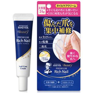 「メンソレータム ハンドベール ビューティー プレミアムリッチネイル」は、爪を保護し、すこやかに保つ爪集中補修クリームです。爪が欠けやすい人や爪の乾燥が気になる人、二枚爪の人などにおすすめです。ジェルネイルや研磨によりダメージを受けた爪表面を補修し、除光液や洗剤などにより乾燥した爪周りを保湿。強く美しい健康的な爪へ導きます。補修成分*1とうるおい成分*2が爪内部のすみずみに浸透。また爪表面をコーティングし、補修成分*1とうるおい成分*2をしっかり閉じ込めます。*1:ヒドロキシプロピルキトサン、加水分解ケラチン(羊毛)*2:加水分解ヒアルロン酸、セラミド2、セラミド3、セラミド6II、スクワラン