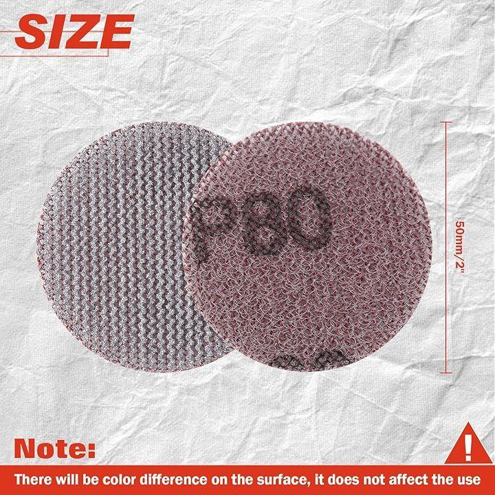丈夫な2インチメッシュの研磨ディスクは、手でもパワーサンダーでも、あらゆる方向にサンディングできます。