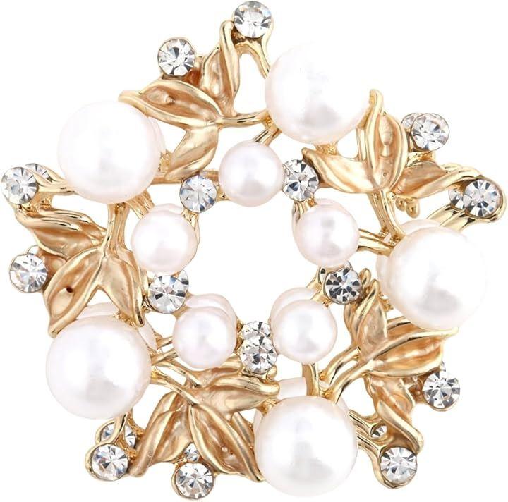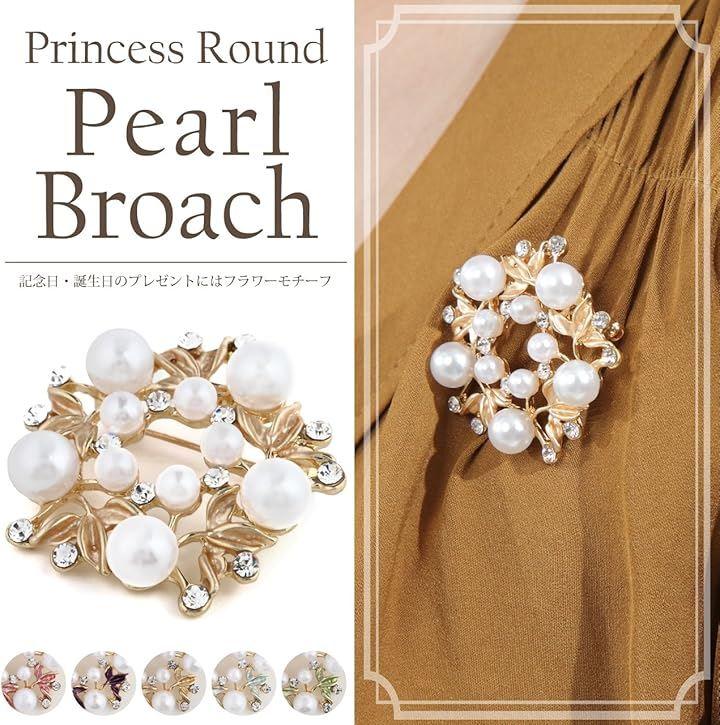 桜の花が咲いているイメージのほんわかしたパールのサークル型ブローチを胸元におしゃれでさりげない輝きを与える事で、お洋服に立体感が生まれ若々しく可愛い印象を与えます。