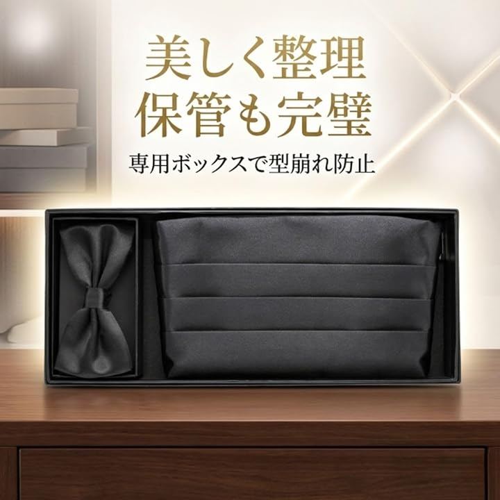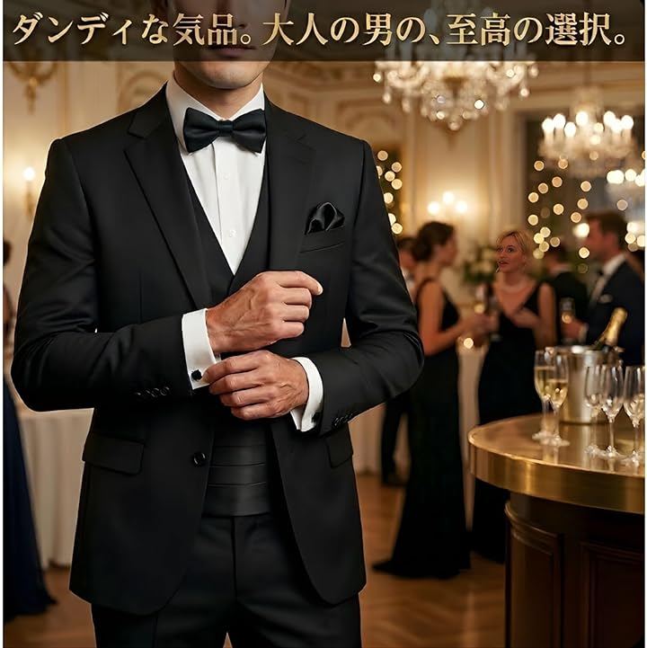 シルクのような滑らかな手触りと、深みのあるブラックが、あなたのタキシードスタイルを格上げ。