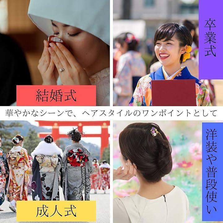 「使用シーン」訪問着、附下、黒留袖、色無地、小紋、等の着物に合わせて、パーティー、フォーマルな洋装シーンや結婚式のまとめ髪や日本髪、夜会巻きにも活躍してくれます。