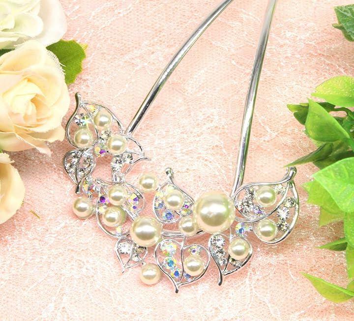 「華やかなかんざし」きらめくストーンとオーロラの様な色味の大粒&小粒のパールを贅沢に使用したハート型のアイビーに果実をイメージしたアンティーク調で華やかな二本挿しかんざしです。