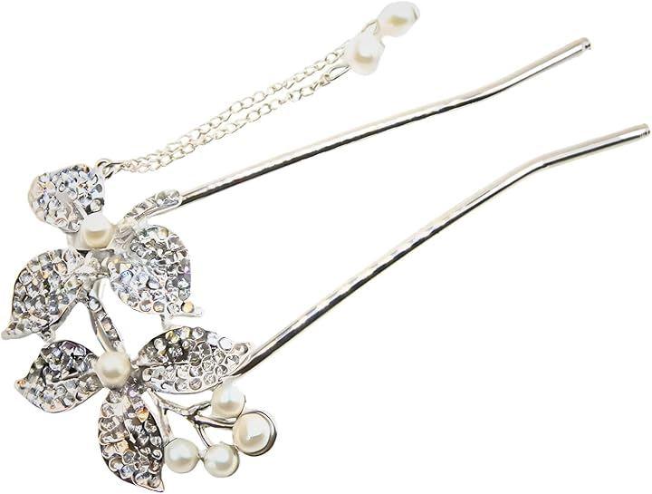 計算されたカーブと適度な重さで、髪をしっかりと固定し、崩れにくく、長時間美しいヘアスタイルをキープできます 素材:合金、キュービックジルコニア フェイクパール サイズ:(約)14cmx6.5cm 飾りチェーン2本(各6cm)
