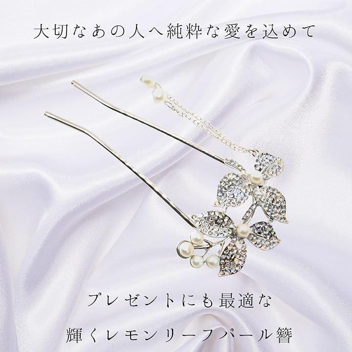 「大きめのレモンリーフかんざし」レモンリーフをモチーフにパール&キュービックジルコニアをセッティングした簪は、パールチェーンを付けていますので風に揺れると優美さを演出します。