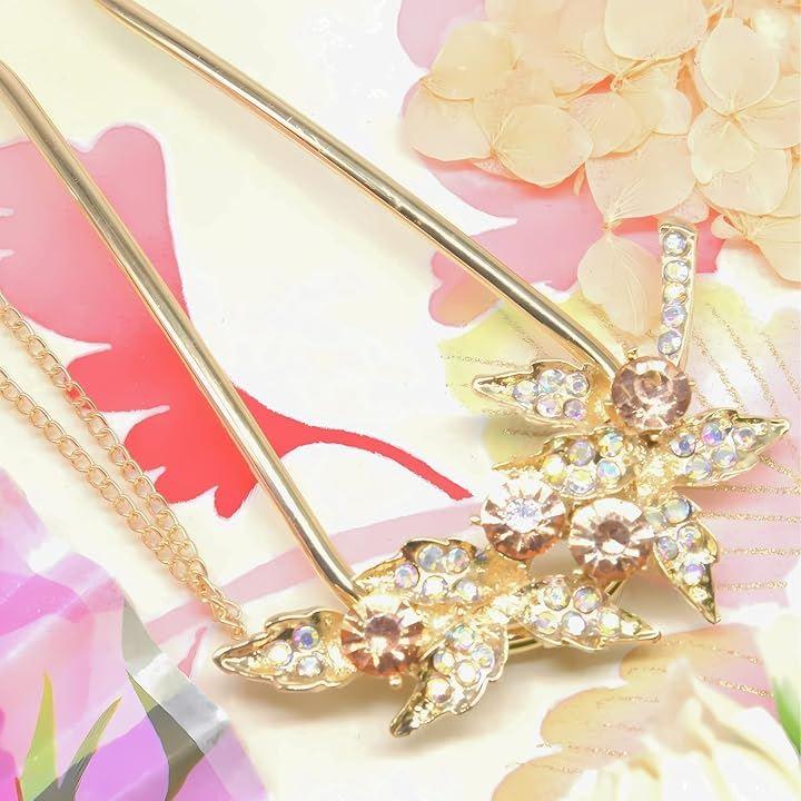 ピンクゴールドのかんざしは、女性らしい柔らかさと優しさを表現してくれて、魅力度を引き立てて特別感を演出してくれます