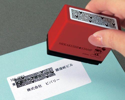 ダイレクトメールや書類の処分で困った事はないか? 手でちぎったりハサミで刻んだりするのも良いだが、こちらの『めかくしスタンプ』を使ってみてはいかがでしょうか。 ミッキーマウスが個人情報保護をお手伝いしてくれる♪ 見られたくない部分にポンッとスタンプするだけで、手軽に情報を隠せます。 ミッキーデザインでスタンプした後もかわいい仕上がり。 インクは透けにくい顔料系インクを使用。 Lサイズはダイレクトメール等の住所部分におすすめ。