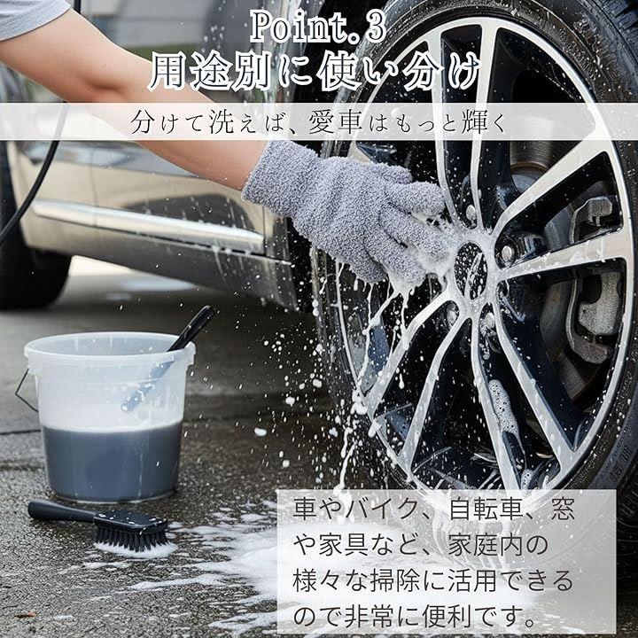 「用途別に使い分け」6枚セットなので、ボディ用、ホイール用、バイク用、室内用など、洗う場所や汚れの種類によって使い分けることができます。