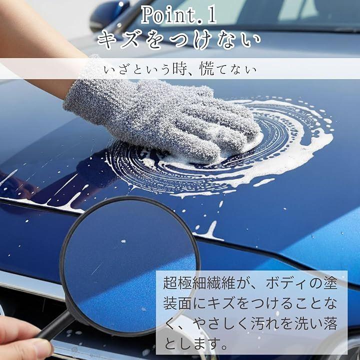「キズをつけない」超極細繊維を採用しており、ボディの塗装面にキズをつけることなく、やさしく汚れを洗い落とせます。