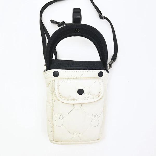 ミッフィーのクリップでどこにでもサッと簡単に付け替え可能なドリンクホルダーです♪自転車やベビーカーにカップホルダーを取り付ければ、ドリンクをサッと収納でき、手が塞がることはありません。取り付けた状態で傾けても、カップホルダーを常に地面に垂直に保つ構造なので、ドリンクがこぼれません。ドリンク収納だけでなく小物を収納するポーチとして、取り外し可能なショルダーベルトを付ければショルダーバッグとしても使うことが出来ます。口をぎゅっと絞るふたカバーもついているので、収納した物がこぼれる心配もありません。1台で様々な場面で使えるマルチなアイテムです。デザインにもこだわりが!側面にはひょっこりと覗くミッフィーのお顔のタグがついています。内装はミッフィーのお顔の総柄。さらに、miffyと刻印されたチャーム付き。細部までミッフィーデザインにこだわっています。落ち着いた色合いのブラック・アイボリー・グレージュの3色展開です☆彡