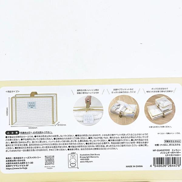 ミッフィーのメッシュオーガナイザー(収納袋)です。衣類やブランケットなどたっぷり収納できるサイズ感が◎移動に便利な取っ手付き。ボックス形状なので物を入れた状態で重ねて収納もできちゃいます♪これさえあればクローゼットもスッキリ収納できて嬉しい~☆M、Lサイズあるのでぜひお好きなサイズを揃えてみてください♪