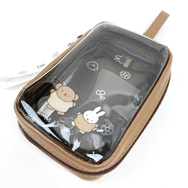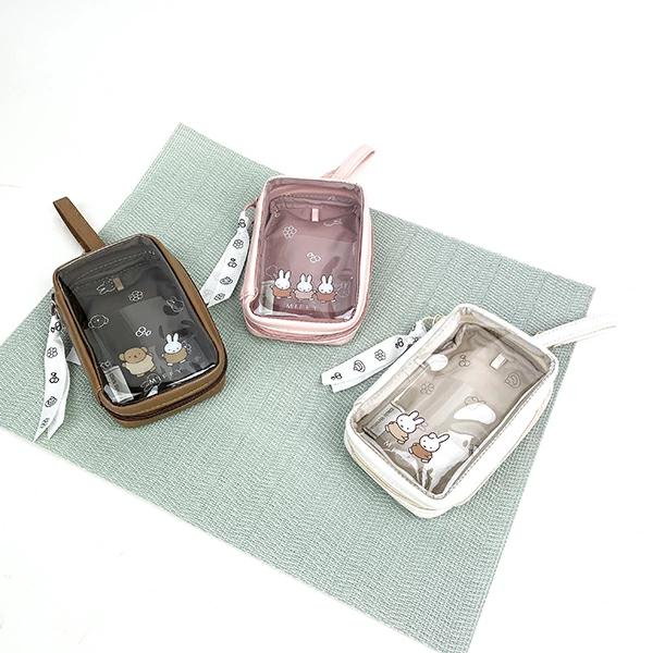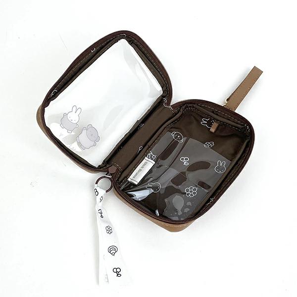 キーホルダーなどを吊り下げられるタグ付で可愛く便利にお使いいただけるプチキャリーケースです。広めのマチで小物類の収納にピッタリ◎収納に便利なクリアポケット×2!