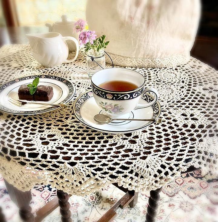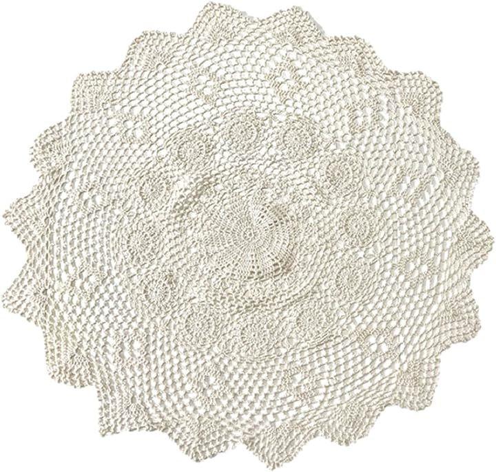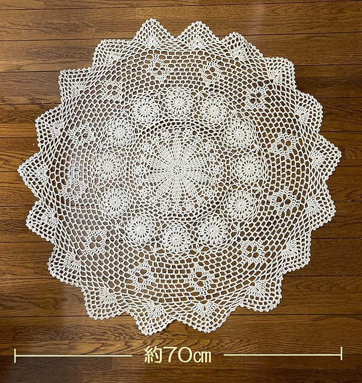 手編みの綿レース、レトロ調、使いやすい大きさの円形レースクロスです。
