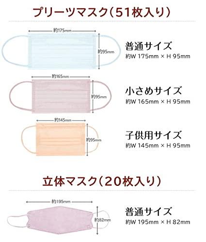■カットフィルターを採用した不織布マスク。BFE:微粒子ろ過効率、99.9%カット。顔にフィットしたフェイスラインを実現。様々なカラー展開で、マスクをファッショナブルに着用できます。■国内検査機関による検査でカット率(99.9%)を実証済み、カラー染料も全色検査済みなので安心にお使いいただけます。■着用後、息苦しくならない様に調節したフィルターをテスト済。優れた通気性を確保しています。■【内容】51枚入■【サイズ】普通サイズ(約)17.5cm×9.5cm/小さいサイズ(約)16.5cm×9.5cm/子供サイズ (約)14.5cm×9.5cm※ご購入後の返品・交換は衛生商品の為受け付けておりません。※工場生産時期により、購入時により多少カラーの濃淡が異なる場合がございます。※カラー画像は、お使いのモニター・端末等によって色合いが異なる場合がございます。実物に近いよう撮影はしておりますがご了承ください。※本商品はmillarugeのOEMマスクです。原産国 中国