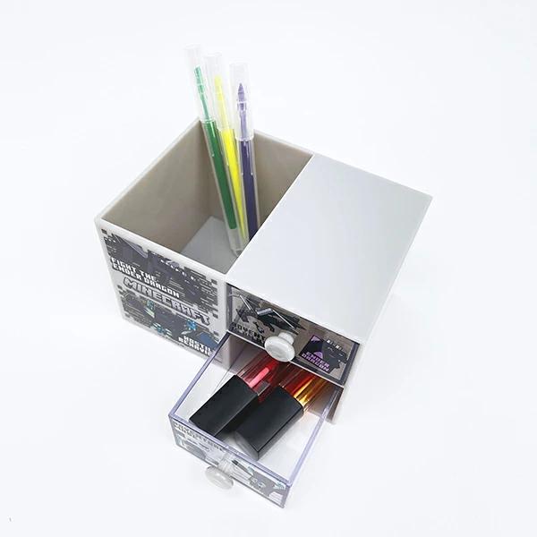 マインクラフトのペンスタンド付きプラチェストです♪デスク周りのペンや小物などを収納するのに、便利なミニチェスト♪お部屋やデスク周りがすっきり片付くアイテム♪引き出しがクリアなので、中身が見えて使いやすい☆彡