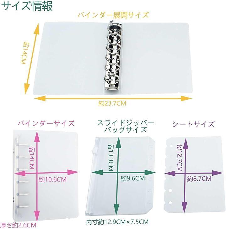 商品詳細 「セット内容」 バインダーx1、シートx4、 スライドジッパーバッグx1、 アクリルフォーム両面テープx1 「材質」 バインダー:ポリプロピレン、スチール シート:ポリプロピレン スライドジッパーバッグ:PE 両面テープ:アクリルフォーム 「お手入れ方法」 汚れた際は乾いた布で丁寧に拭き取ってください。