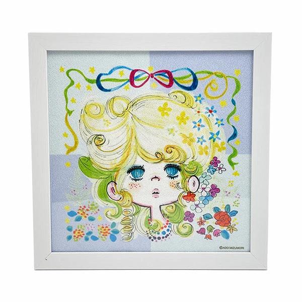 水森亜土のイラストが描かれたちりめん生地を白い額縁に入れた、インテリアにピッタリな額装です。亜土ちゃんの優しい世界観をお家でも楽しんでくださいね♪