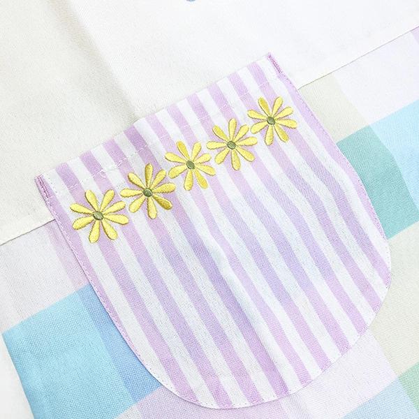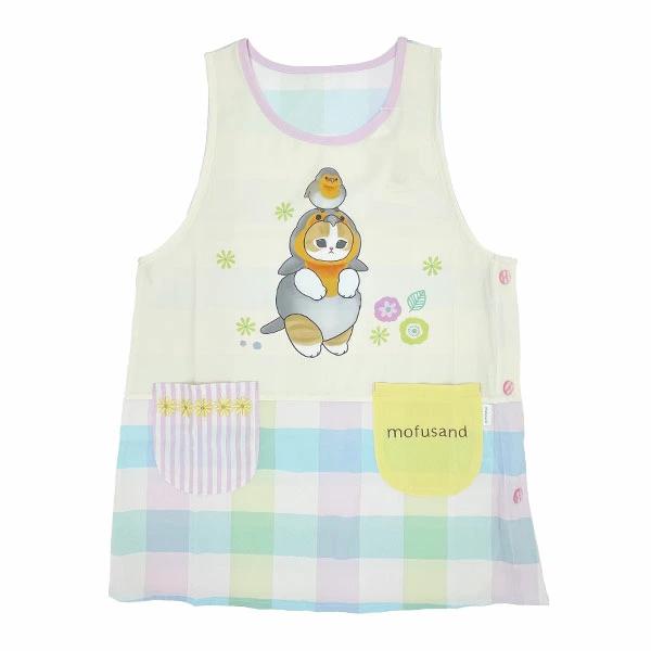 モフサンドのチェック柄切替エプロンです。コトリの姿がとってもキュート♪ポケット付きが嬉しいポイント!被るタイプなのでサッと着れるので保育士さんにもおすすめです☆彡【サイズ:M~L(着丈:83cm)】
