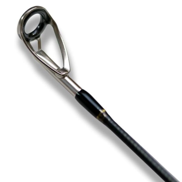 ボートゲームの主軸であるMX-6+の守備範囲を越えてくるサイズのルアー、ビッグターゲット、急流、ハードジャークなど、更なる高負荷条件を想定したアップパワーモデルがMX-6Pro。変更点はブランクのスペックアップ、ロッドバランスを最適化、グリップ周りの各パーツの再設計、ガイドセットも再選定、長時間の釣りでも疲労を抑え釣りを継続可能。何が「Pro」なのか。[6系統]の出発点「MX-6」)レギュラーテーパー)は1oz程度を上限にブランクパワーを設定、そのブランクのバットを強化し先調子化した「MX-6+」)レギュラーファーストテーパー)は、2oz程度を上限とし、1oz程度のルアー操作に適する。「MX-6Pro」では、3oz程度のルアー操作に最適解を設定し、4oz程度を上限としたルアー操作に適する。6ft弱の定番レングス、リールシートからトップガイドまでのレングスは変化無し。グリップ長もバランス調整の範囲に留め、操作性の統一感を持たせ、トップガイドを大径化し、ある意味小さなルアー以上に繊細な大型ルアーの操作やセッティングに最適化。 全長:5ft10inch 重量:165g 仕舞寸法:50cm 継数:5本 パワー:ヘビー アクション:レギュラー ルアーキャパ:10-120g ラインキャパ:PE6号迄 リーダーキャパ:150lb迄 トップガイド:7mm トリガー以下:33cm ・50cm以下仕舞寸・グリップ互換・並継ブランク・Wフットガイド ・分割可能グリップ・ステンレスSiCガイド・Wラッピング ※実物と色が違って見える場合があります。あらかじめご了承下さい。