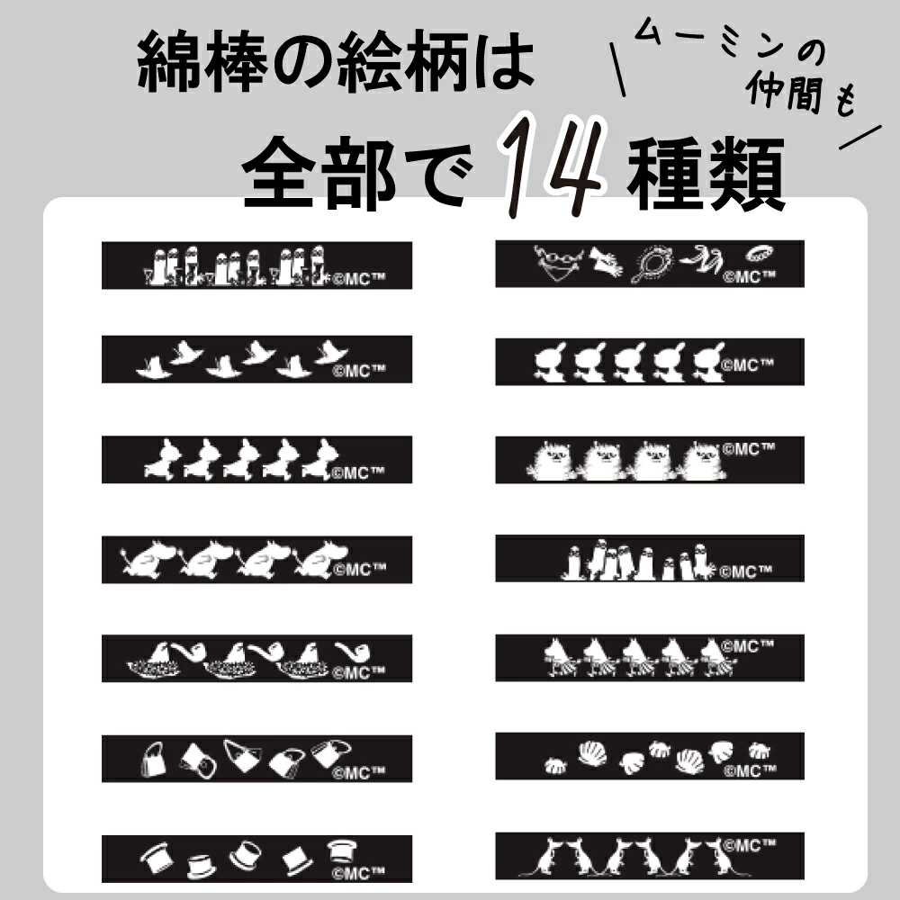 【商品情報】●黒い綿の凹凸のある綿棒なので、汚れがはっきり見えます●ムーミン谷の仲間をモチーフにした黒いお洒落な綿棒●可愛いムーミンたちとのリラックスタイムをお過ごしください●耳掃除はもちろん、メイク直しにお使い下さい●かわいいパッケージの綿棒なのでお部屋のインテリアにも違和感なくピッタリなじみます!