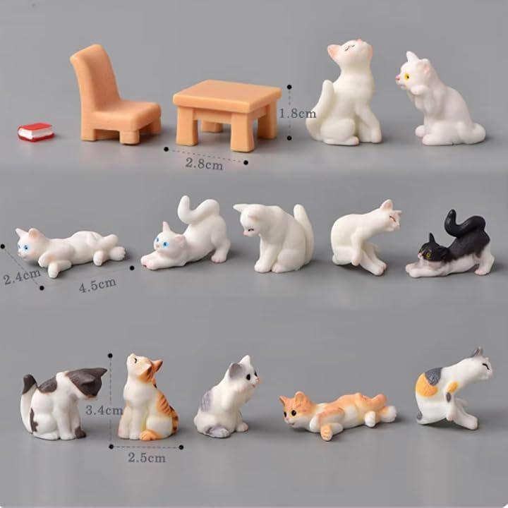 セット内容:猫12体、机1個、椅子1個、本1個 フィギュアサイズ:写真をご参考ください。