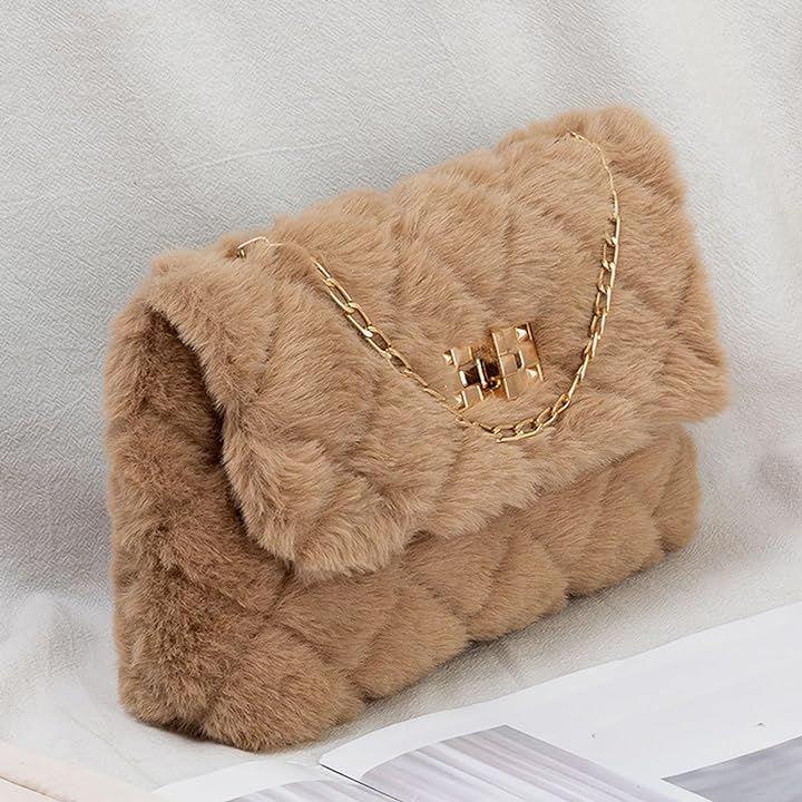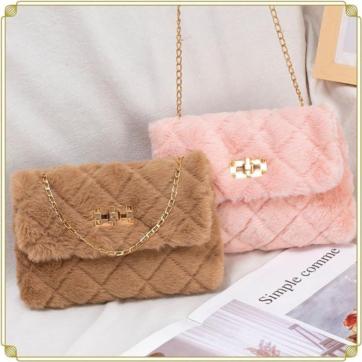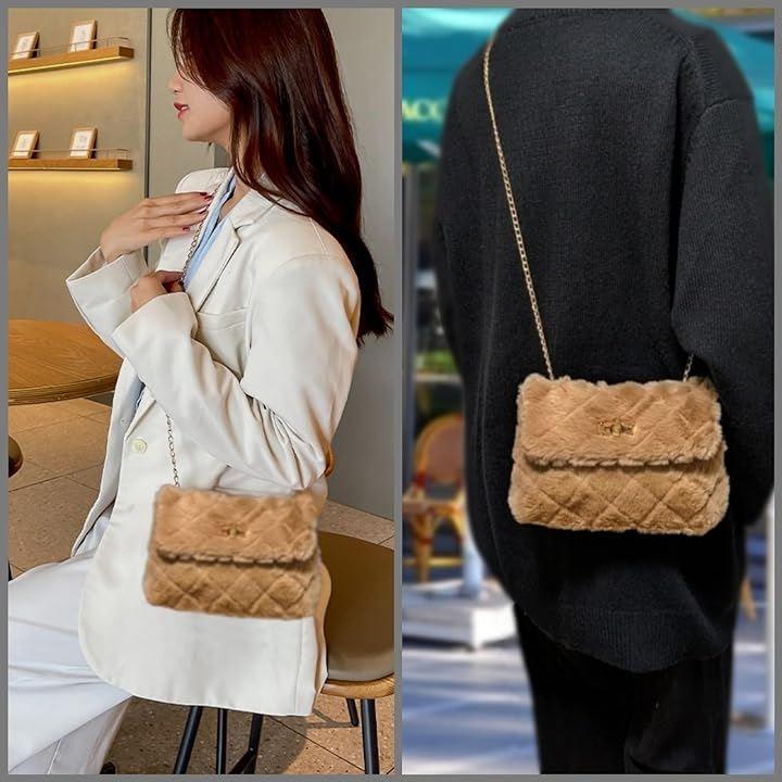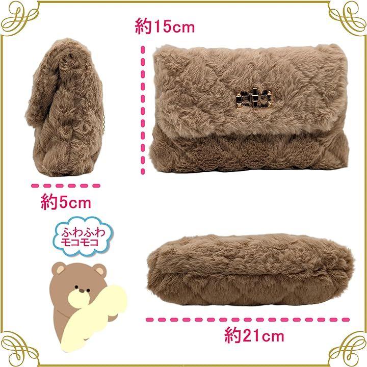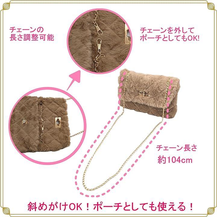 ミニバッグは柔らかモコモコファーデザインだから持っているだけで優しい印象をアピール出来る。女子力UP. ミニショルダーバッグの斜めがけ用のゴールドチェーンは取り外し可能。