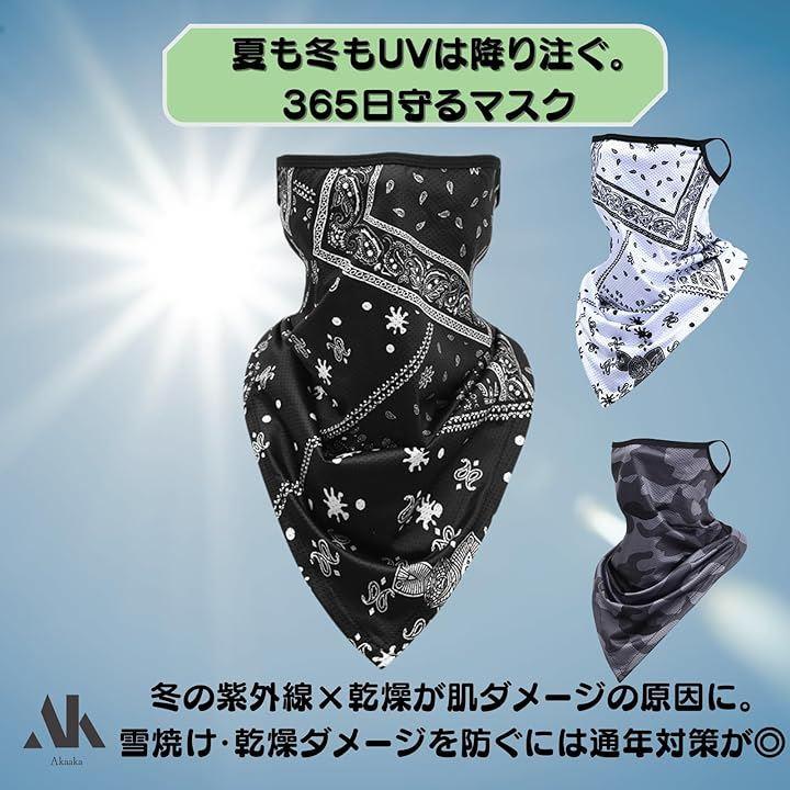 「UV・防風対策」UVカット機能と防風性を兼ね備えており、屋外での紫外線や風から顔・首をしっかり守ります。