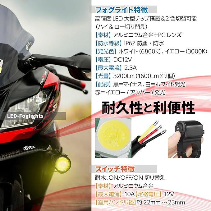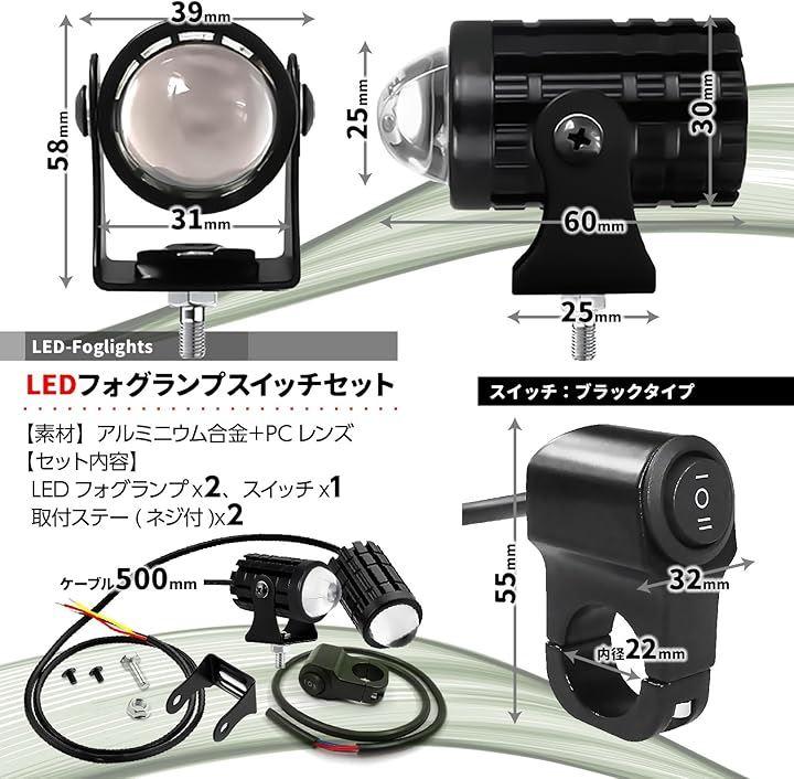 フォグランプ2個セット、スイッチ1個セットは、バイクのカスタムに最適。