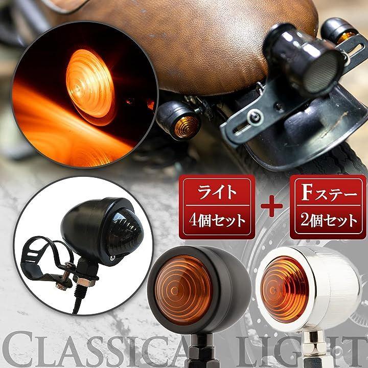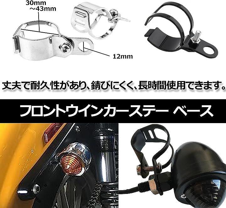 バイク用ウインカー、フロントステーセットは、アメリカンバイク愛好者におススメの砲弾型のウインカーとパーツセット。