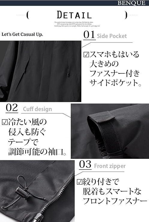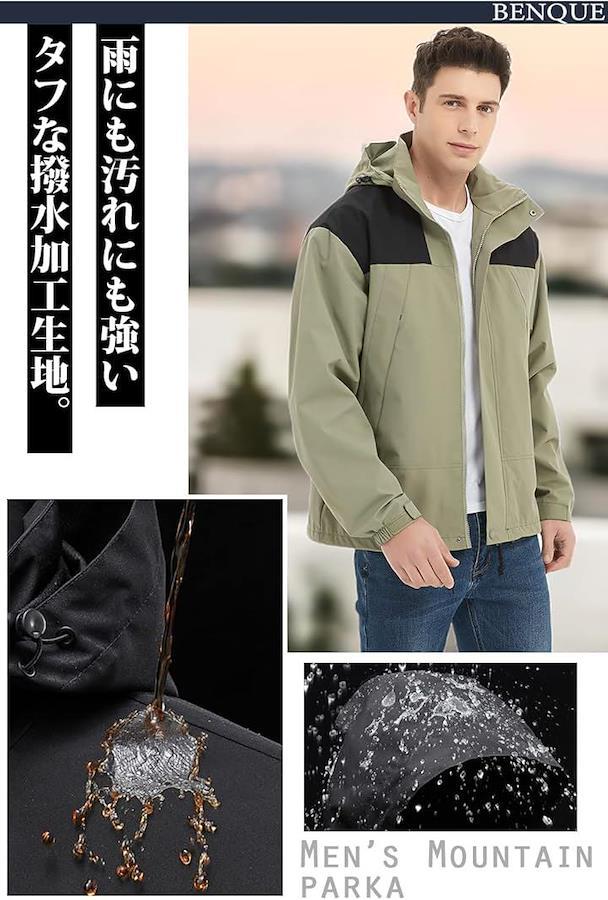 「レインコートとしても使える」 雨にも汚れにも強いタフな撥水加工生地を使用。