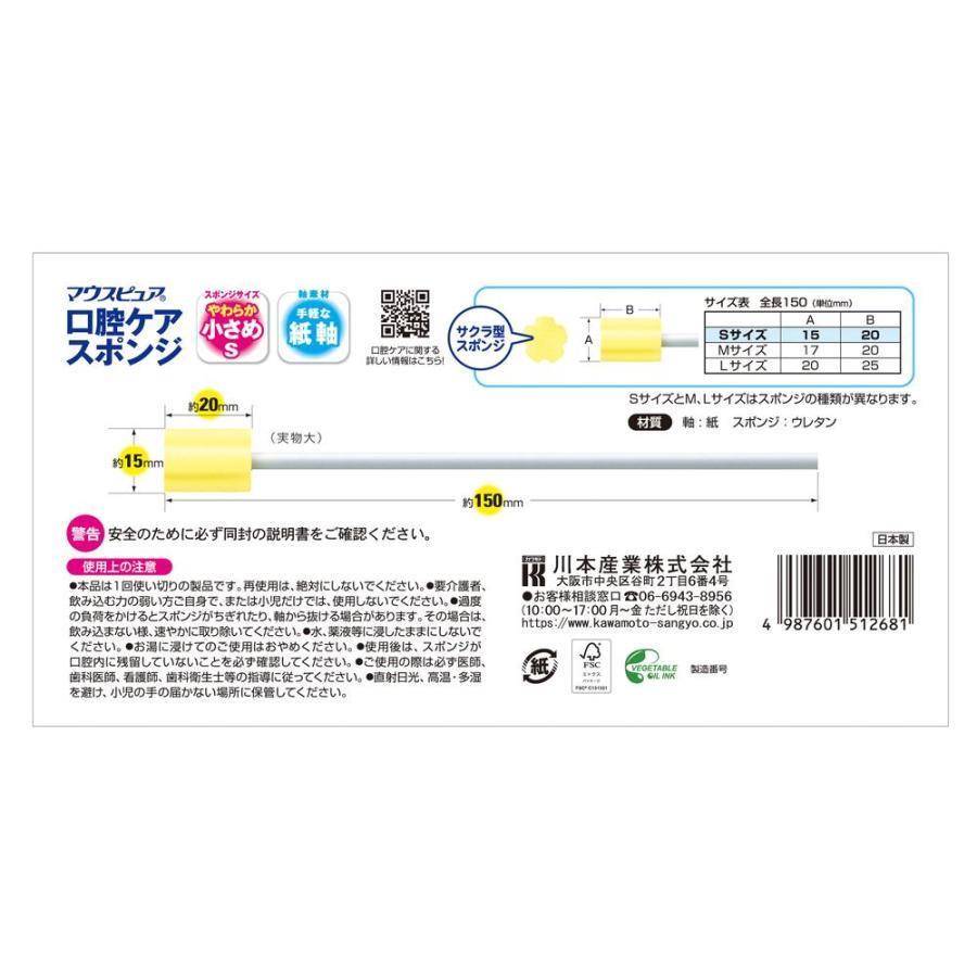 【注意事項】・本品は1回使い切の製品です。再使用は絶対にしないでください。・要介護者、飲みこむ力の弱い方ご自身で、または小児だけでは使用しないでください。・過度の負担をかけるとスポンジがちぎれたり、軸から抜ける場合があります。その場合は飲みこまないよう、速やかに取り除いてください。・水、薬液等に浸したままにしないでください。・お湯に浸してのご使用はおやめください。・使用後は、スポンジが口腔内に残留していないことを必ず確認してください。・ご使用の際は必ず医師、歯科医師、看護師、歯科衛生士等の指導に従ってください。・直射日光、高温・多湿を避け、小児の手の届かない場所に保管してください。